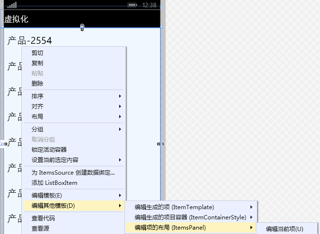 当我们编辑ListBox的ItemsPanel的时候,工具帮我们自动生成了下面的代码。