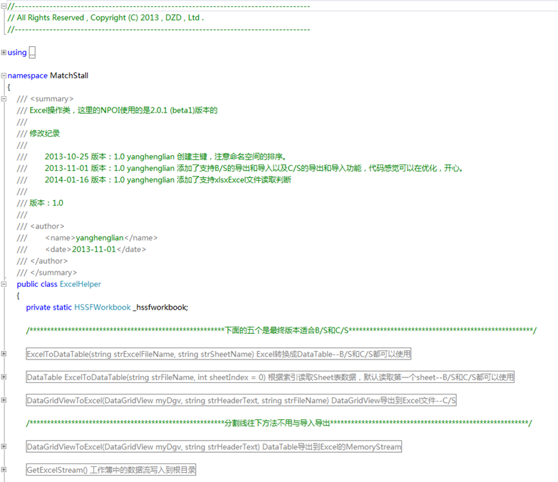 1.我封装了这个类(ExcelHelper),该有的注释我也都加上了,希望大家可以看得懂!