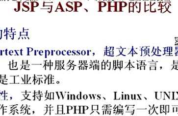 jsp视频教程下载第三讲 :主要是对JSP进行介绍,并且把JSP和ASP以及PHP之间进行相互比较,当然这里并没有将其与ASPX(即.NET)来进行比较。也把ASP的特点以及PHP的特点...
