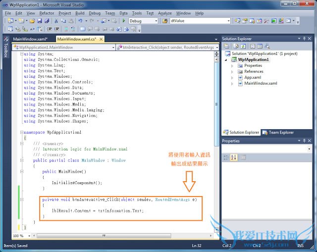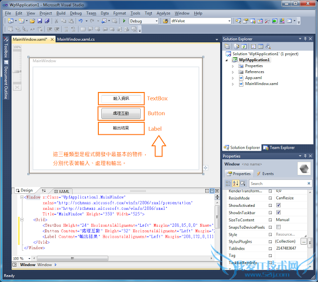 简单的了解视窗设计的基本概念后,就準备开发第一个应用程式啦,一开始就先 新增 C# WPF 的空白专案,接下着请先拉出理想中应用程式的画面,基本上就是用来显示输入资讯、处理互动和输出结果的画面,接着再透过属性 (Properties) 视窗调整物件的细部样式。
