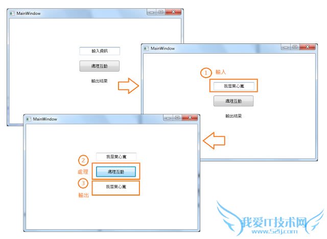 接着请按键盘上的 F5 钮,即可执行应用程式,此时当您在输入框输入资讯,按下处理互动按钮后,就会透过标籤产生出结果。