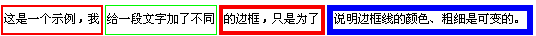 上面的示例中,给一段文字加了不同的边框,只是为了说明边框线的颜色、粗细是可变的。