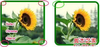 左图是在Safari5.0、Google Chrome 10.0、Opera11.1下的效果,我们可以看得出,图片根本就没有圆角效果,右图是在Firefox4.0下的效果,低于这个版本的和左图一样效果,如果需要达成一致效果,大家就必须放弃border-radius而采用CSS2制作圆角的老办法。另外table的样式属性border-collapse是collapse时,border-radius不能正常显示,只有border-collapse: separate;时才能正常显示。