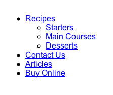 嵌套列表是一个很好的方式来描述导航系统.在这个例子我们用了第一个列表来表示主菜单,而子菜单则包含在主菜单的下面.这样如没有CSS样式,结构也是非常的清晰.