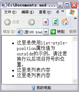 <li>这里是使用list-style-position属性值为outside的示例。请注意换行以后项目符号的位置。</li>