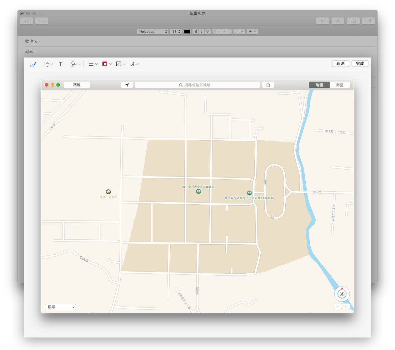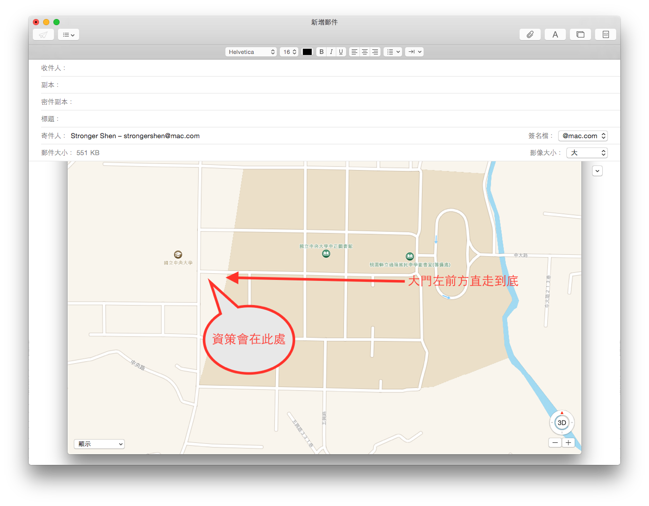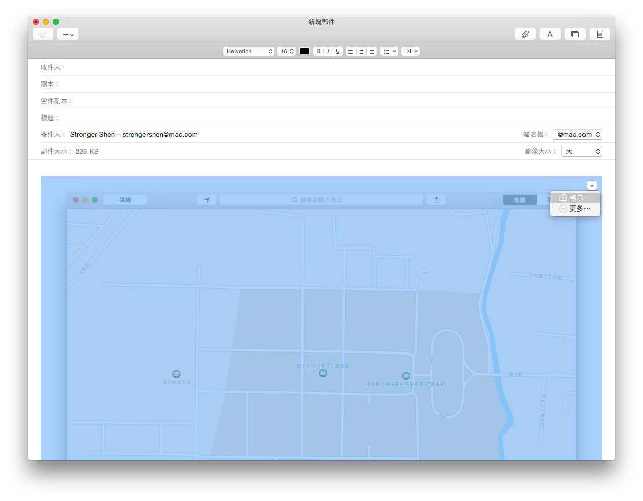 比如说,要约定哪个地客人碰面,从地图上找好了位置,可以分享到 mail 新增邮件,这时候地图的画面会截取在邮件内文。