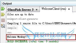 系统会产出Welcome Monkey!!的讯息,代表你的Web Service Client可以成功呼叫Web Service服务。