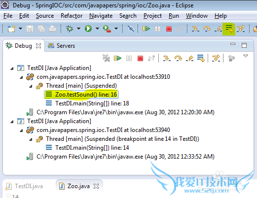 这个特性我非常喜欢,他允许当一个选定的属性被访问或者被更改的时候程序执行暂停,并进行debug。最简单的办法是在类中声明成员变量的语句行号左边双击,就可以加入一个观察点。