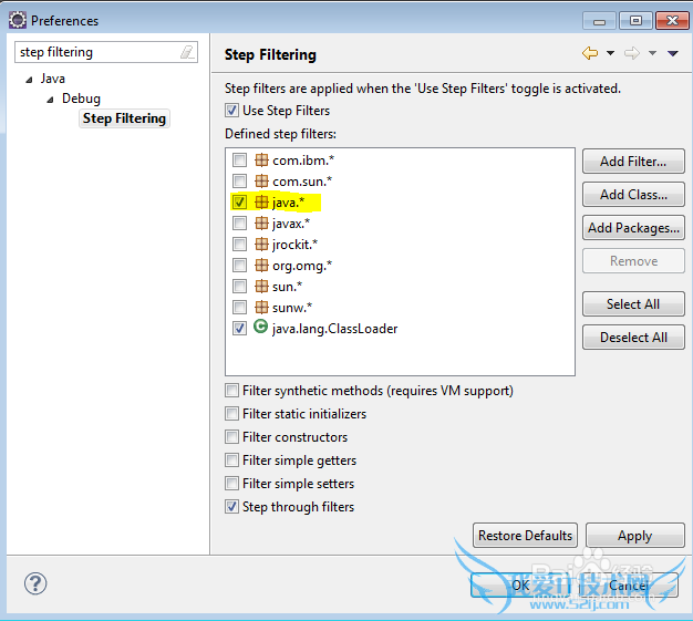 当我们在调试的时候摁F5将进入方法的内部,但这有个缺点有的时候可能会进入到一些库的内部(例如JDK),可能并不是我们想要的,我们可以在Preferences中添加一个过滤器,排除指定的包。