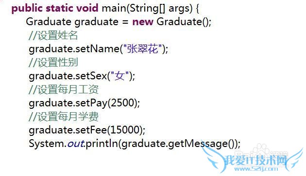 它的成员变量有name(姓名)、sex(性别)、fee(每学期学费)、pay(月工资);