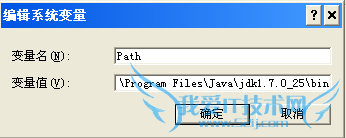“;C:\Program Files\Java\jdk1.7.0_25\bin” 注意符号。