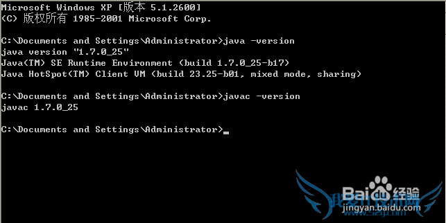 在CMD下输入java -version和javac -version测试是否安装成功,如下说明成功了。