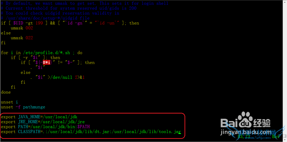 接下来也是一下设置系统参数:vim /etc/profile,编辑profile文件,在profile文件底部加上JAVA_HOME,PATH,CLASSPATH,JRE_HOME等即可