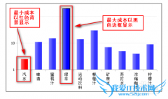 类别:java教程 发布时间:16-04-02 点击:1942希望将满足一定条件的某个系列高亮显示。如下图,销售成本最少的显示红色,销售成本最大的蓝色突出,以上需求可以通过设置图表的条件显示来实现:前期准备工作(包括...