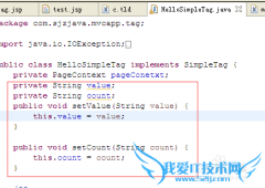 javaWeb带属性的自定义标签详解(1)详细的操作方法或具体步骤1.在HelloSimpleTag的doTag方法中新建两个属性value,count,并设置set方法2.修改myTag.xml,输入如下代码,...
