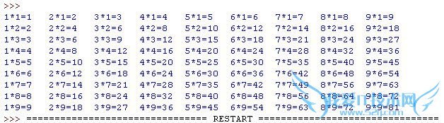 用Python演示99乘法表操作: