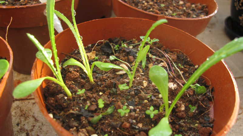 红土是周末一家人到大地球春游时带回来的。人家的红土地里刚刚翻过的胜利果实,属于攫取别人的劳动成果。不劳而获的直接后果是,在种子发芽的同时,花盆里同时疯长的还有去年土地里播撒下的农作物的芽苗。可惜我不知道是什么。