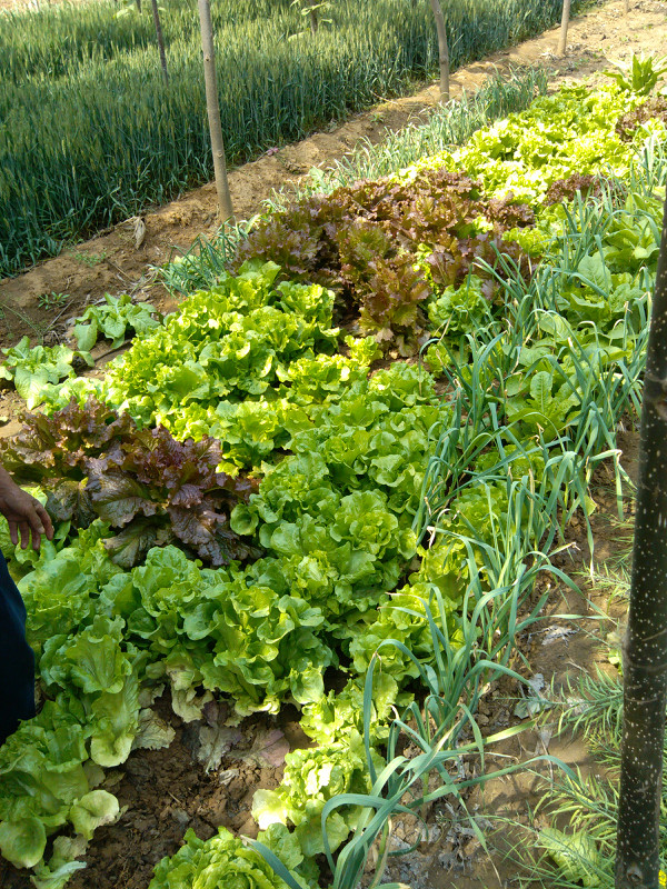 一大群人热热闹闹吃过中饭,送走老朋友,我们就到菜地挖菜。巍指着齐腰高,开着白花的植物问:这是什么?我老练地说:是红萝卜种子(我看叶子很像红萝卜叶)。父亲纠正说:是芫荽(香菜)种。我们惊叹父亲种的生菜和跟大菜长得那么大,还那么嫩。父亲说是水足肥足。他总去挑养猪场的肥水浇地。我让他别挑了,他的肝病、疝气都不允许他干重活。他总是嘴上嗯一声,还是照旧,一点也不听。