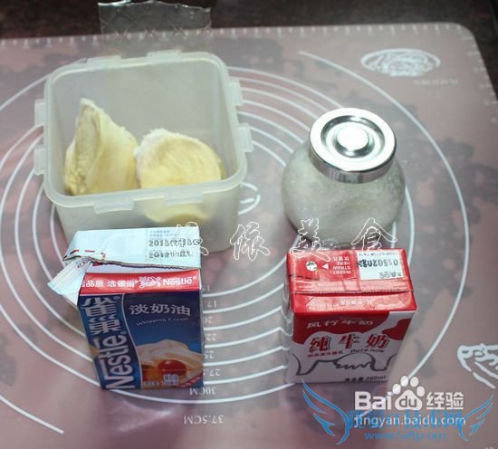 (方子和做法参考烩烩小厨的芒果布丁,但由于榴莲果肉比较稠,所以