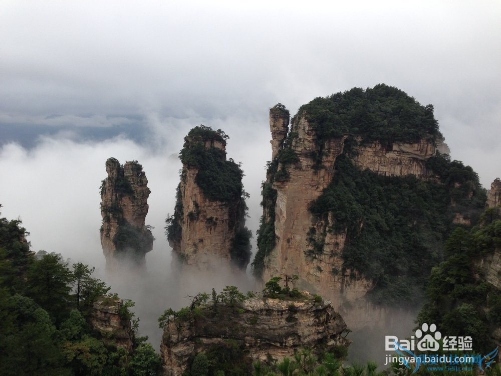 因为第一天袁家界根本没看到什么,坐车去天子山方向的话必须在天下第一桥坐车,迷魂台车站到天下第一桥车站这一段距离必须是步行,刚好这两个车站之间是袁家界景区,所以就想着反正也是走那么一段路,不如碰碰运气看看今天能不能看到景点(两个车站之间有柏油路),结果证明运气很不错,雾时有时无,景点都显露出来(幸亏又重新走了一遍,不然回去之后肯定后悔)。重游袁家界9:00——10:50结束,因为当时天气好,加上团队旅游的比较多,又想拍个好景,所以时间用得比较长。