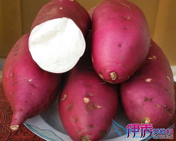 白薯色浅,食用口感较干,甜味较淡,含有大量的食物纤维,在肠道内无法被消化吸收,能刺激肠道增强蠕动,通便排毒,尤其对老年性便秘有较好的疗效。