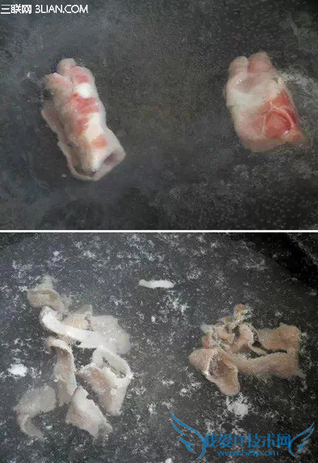 通过“涮烫”的方式也可让假羊肉原型毕露。消费者在鉴别真假羊肉时最好的办法就是直接放进锅里煮,如果您已经胃口大开等不及解冻了呢,可以挑一片羊肉先放进锅里,如果是假的羊肉,它大约煮一分钟左右,红色和白色肉的部分就会完全分离了,而真羊肉不管煮多久都是黏连在一起的,好羊肉下入锅底,汤一般都比较清澈,沫子较少。