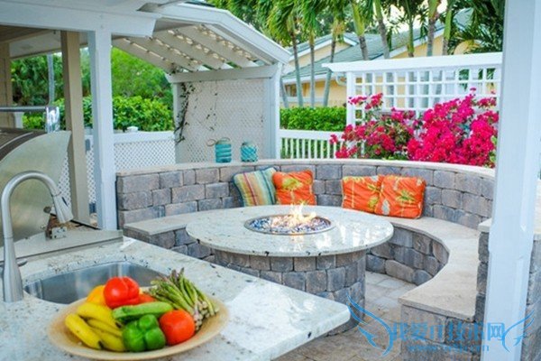 一眼望去,这款阳台的总体形状就给人新鲜别致的感觉。一簇鲜红的花束在纯白与嫩绿之中风情万种的妩媚。盥洗室和围炉的设计让野外BBQ可以落身于此。