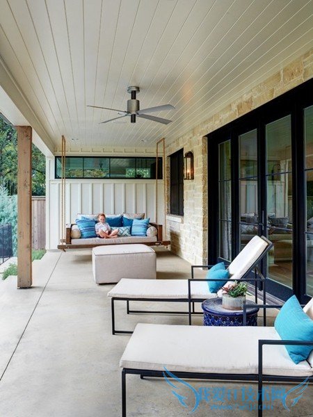 生活,尤其是在家的生活当然要懒意洋洋。这款阳台的躺椅和吊床设计都突出了享受生活的概念。加以温暖清丽的色系让懒意成为理所当然的享受。