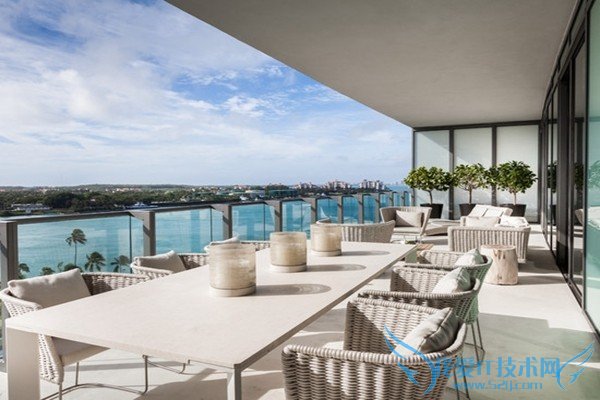 完全裸露在阳光空气中的阳台更接近天然的新鲜气息。清新蓝的泳池与天空的通透蓝相映相衬,在灌木点点旁,散发着海的情怀。