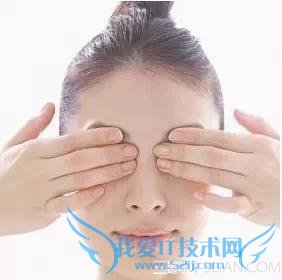 4、闭上眼睛,用拇指以外的四根手指按住眼睛,然后以波浪式按揉眼球。以适度的力道按揉眼睛的话,可以很快有效的解除眼睛的疲劳。当然眼球会感到一点点的酸痛是正常的。