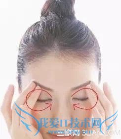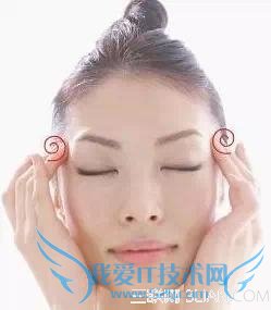 2、用中指和无名指按住太阳穴,然后用力的以画圈圈的方式按摩。用力地给太阳穴按摩的话有利于快速的去除起床气,重新恢复眼睛的清澈明亮。对于经常用眼的人来说,可以有效地去除疲劳。