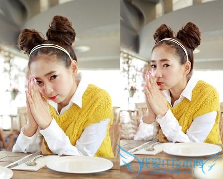 韩国日本两个潮流的王国都非常流行的丸子发髻看样子今年得必火,它已慢慢的进入了时尚的舞台,这款发型不仅个性可爱,而且灵气十足。更是青春俏皮中不失童真的味道!