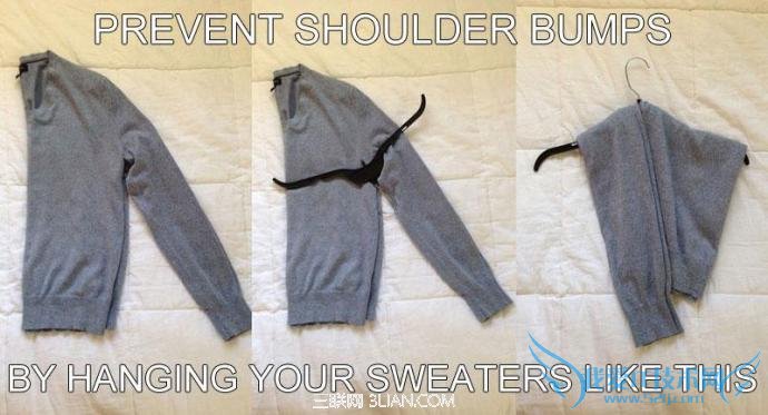 ▼2. 冬天的毛衣挂久了,肩上总会留下衣服架撑起的泡泡。如何挂衣服才能避免毛衣起泡泡呢?
