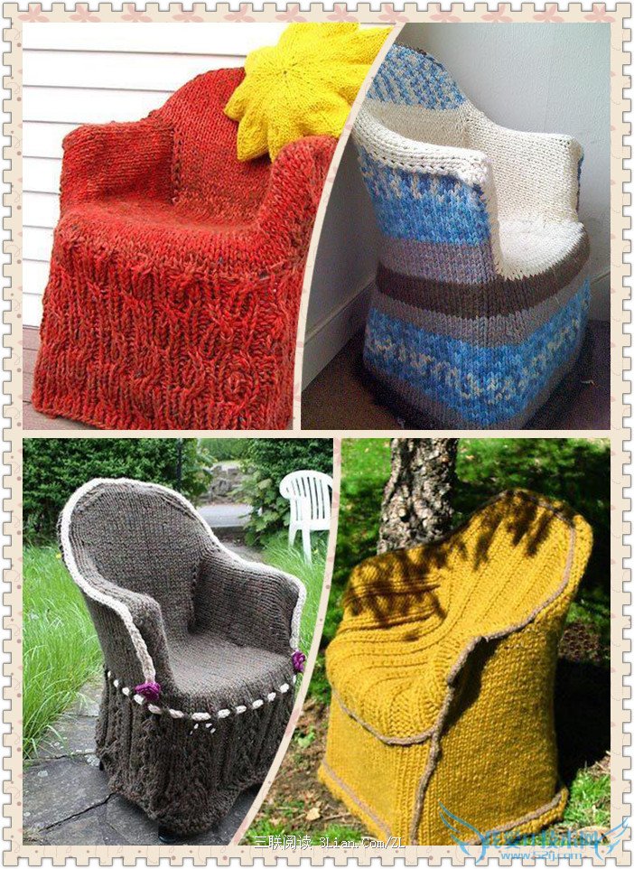 然后就开始织了,从椅子的底部开始,可先测量估计开始的针数,然后从下往上织。织到坐垫的高度后,改换针数,开始织椅背,针数都要根据椅子的实际大小来设定。下面开始织椅子靠背的正面、坐垫和扶手。最后把它们都缝合在一起,直到椅子完全被覆盖。是不是既简单又漂亮呢,最重要是亲自动手diy,体验其中的乐趣。