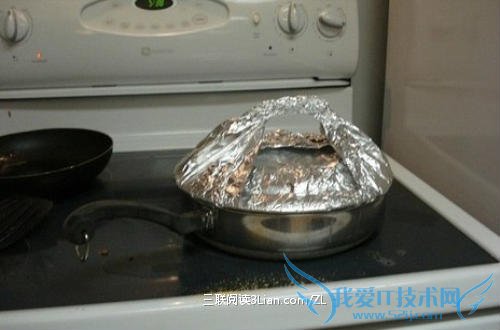 5、没有锅盖但想要焖饭,拿盘子盖住发现不能掀开?没关系,用锡箔纸包住一个盘子并捏出个提手来。