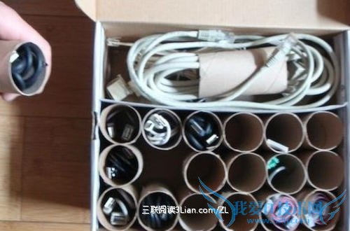 39、很多数据线?用卫生卷纸芯和鞋盒分类放好。