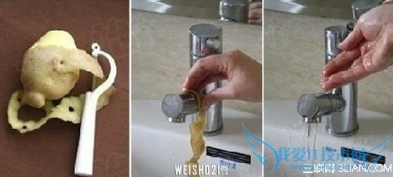 ▌用土豆削下的皮,贴着肉的那一面擦拭,马上恢复闪亮!