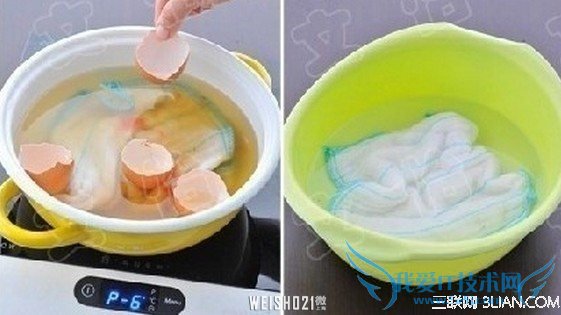 ▌把抹布放入盛有清水的锅中,接着将生蛋壳放入,大火煮开,开盖持续煮6分钟,然后取出,用凉水冲洗干净,晾晒干就可以啦!