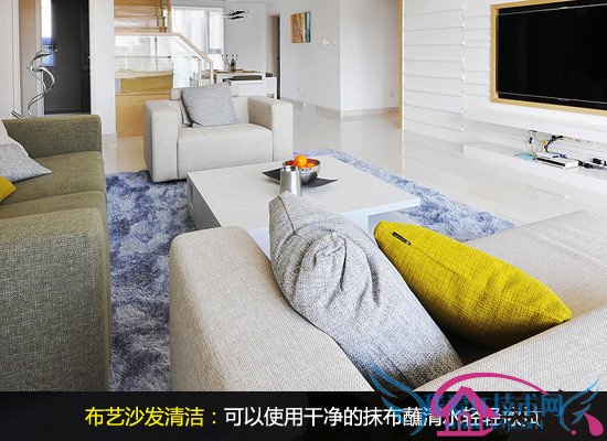 布艺沙发清洁:布艺沙发舒适软和,却不耐脏,对于较浅的污渍一般可以用抹布混合清水擦拭。污渍较严重的时候则可以用干洗的方式进行清洗。