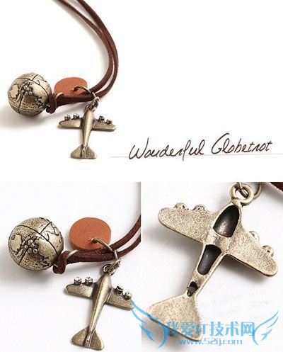 地球、篮球加飞机,充满童趣的一款项链,利用质量超好的牛皮绳作为项链部分,很实用呢!