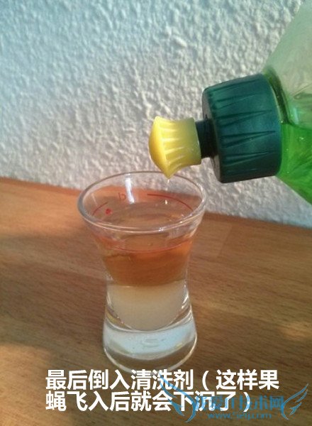 最后倒入清洗剂(这样果蝇飞入后就会下沉了)