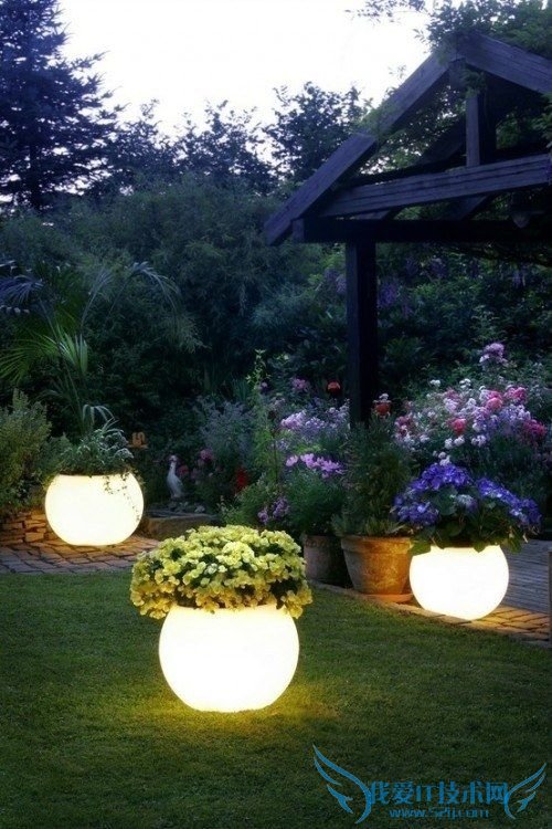 仅仅能发光的地灯太low了,加一点绿色植物装扮一下也挺好。