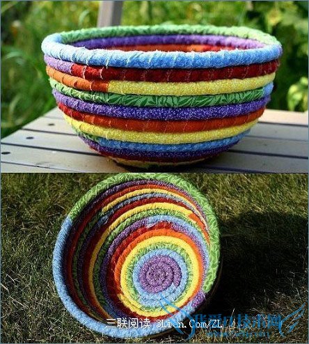 彩虹收纳盒:这款用废弃的纸+不同颜色线缠绕成的收纳盒是不是很精致呢?