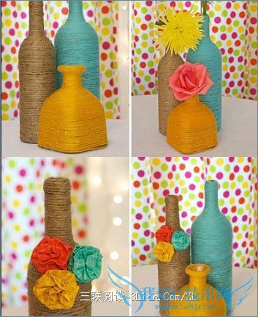 毛线花瓶:用废弃的瓶子,缠上这种线,放在家中绝对不会有失档次的。