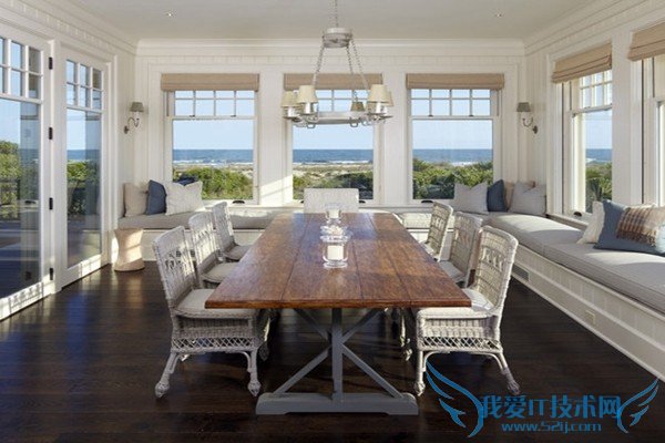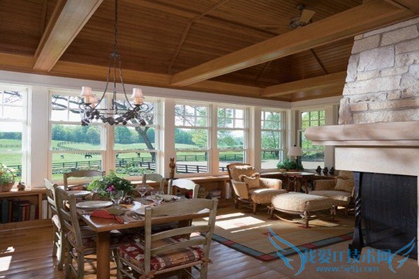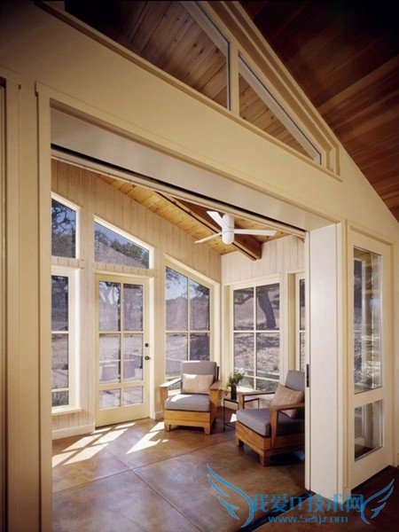 这款阳台的直接承载了餐区和客厅的功能,可见主人很是喜爱贴近自热的暖心生活。粗狂的木色透露着原始的自然风情。