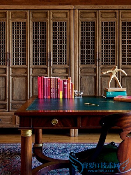 墙上地毯挂画来自DOMO nature。大木桌来自法国旧货市场,据说有两百年的历史。 桌上白色陶瓷花瓶来自DOMO nature,Seletti Hybrid系列陶瓷茶杯来自Arrtco Collection。 丝织的地毯来自著名地毯修复师复刻的旧时大家族私宅藏品。
