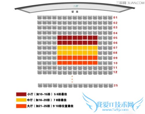 这个位置就在离荧幕2/3的那排椅子 。比如有25排座位,那么16、17排的效果是最佳的。有20排 那么13、14排的效果最好。这个规律不受放映厅和荧幕的大小影响。