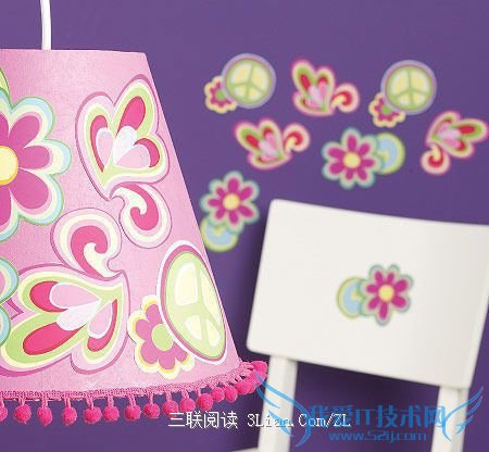 用青春亮丽的色彩,以及充满可爱花朵图案的墙贴,营造出一种轻松甜美的风格,搭配同样非常可人的家具,形成很典型的女性空间效果。