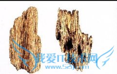 2.伪劣品沉香不含树脂的白色木质部,而朽木部分(暗灰褐色)占的比例较多。