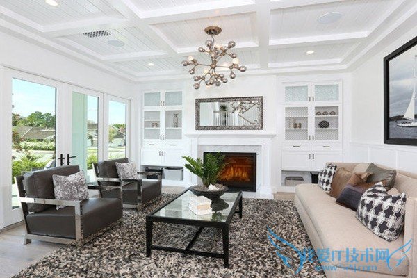 白色的基本色让空间的亮度一下子提升起来,毛绒绒的白地毯让人很是忍不住爱惜它的单纯洁净。茂盛散开的植物让白色空间里活力十足。